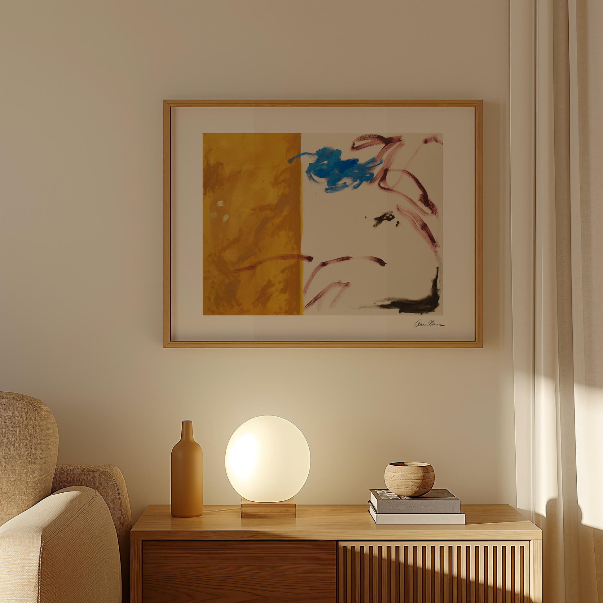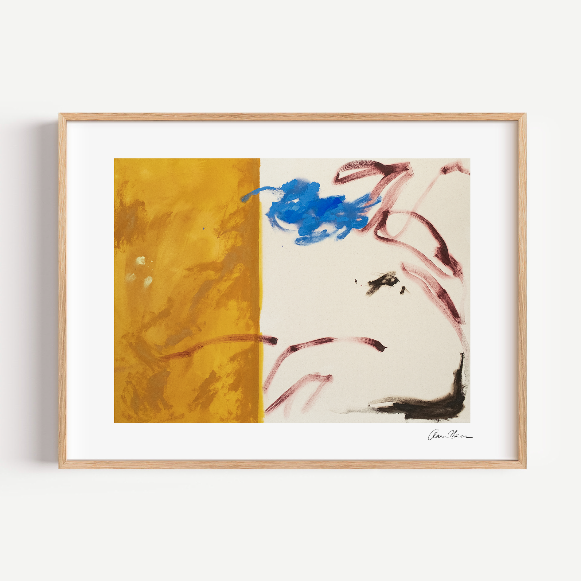 Better Days feels like sunlight after a long stretch of clouds — that quiet shift when hope begins to rise again. The bold golden left side radiates warmth and renewal, while the loose, expressive marks across the soft cream background carry a sense of movement, healing, and growth. The pop of vivid blue feels like a spark of clarity or joy breaking through. This piece holds the feeling of leaning into what’s ahead with curiosity and courage, a gentle reminder that even small moments of color can change the whole tone of a day.