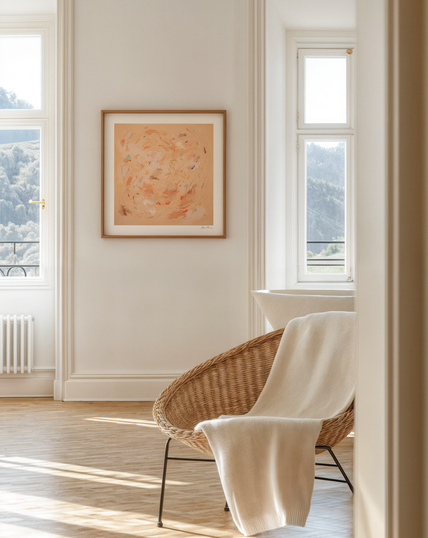 Enhance your walls with this archival print, carefully reproduced from my original painting, Freely and Lightly. With joyful sweeps of terracotta and earth tones, it reflects a spirit of surrender and celebration—perfect for bringing warmth and movement into your home.