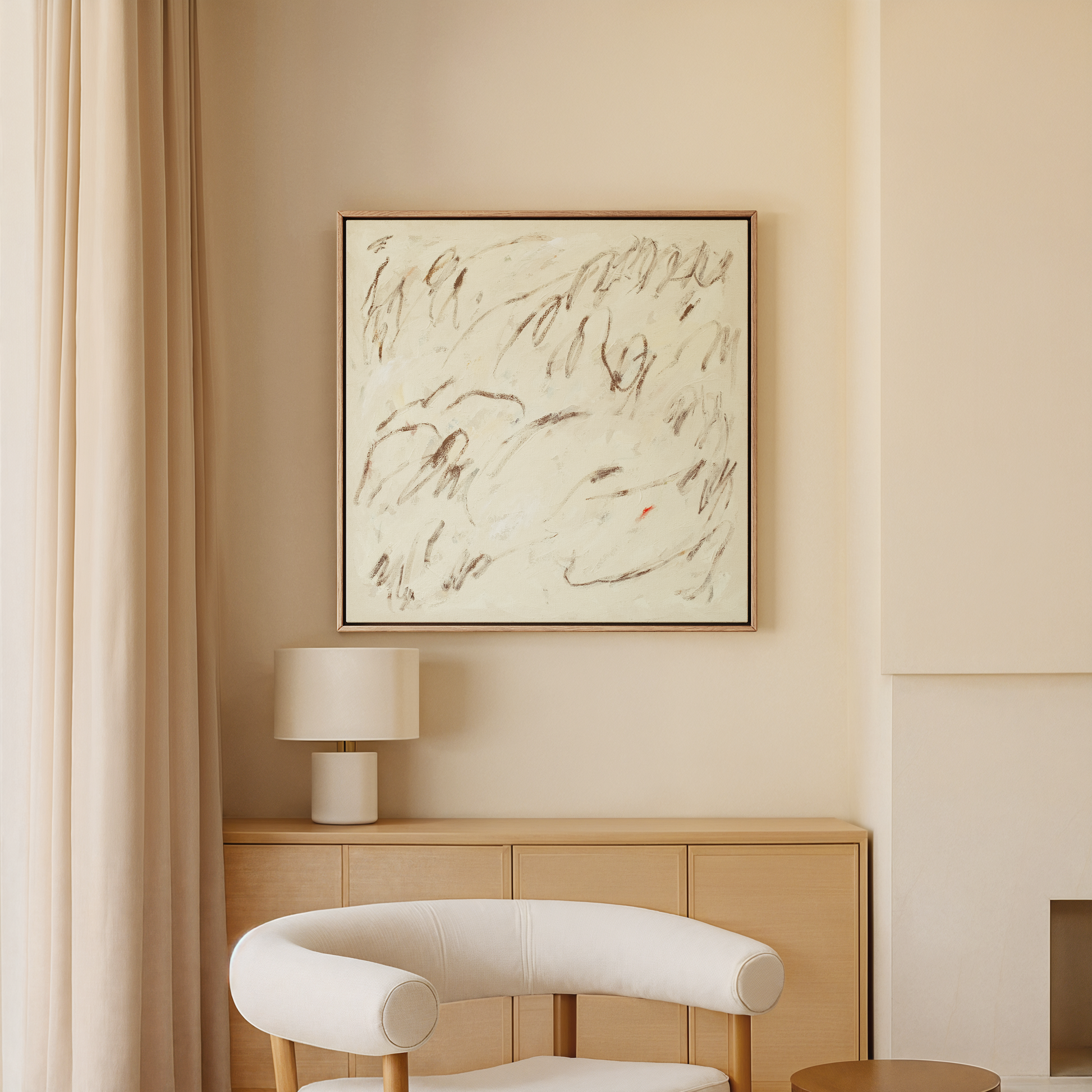 Take Your Time carries the quiet reminder we all need — that it’s okay to slow down, breathe deeply, and move at a pace that feels kind. Soft, earthy strokes drift across a warm neutral background, creating a sense of openness and ease, like walking through a calm field at golden hour. The tiny touch of red feels like a small spark of presence, a nudge to pay attention to what’s right in front of you. This piece brings a peaceful, grounding energy to any space, inviting you to rest and linger a little longer.