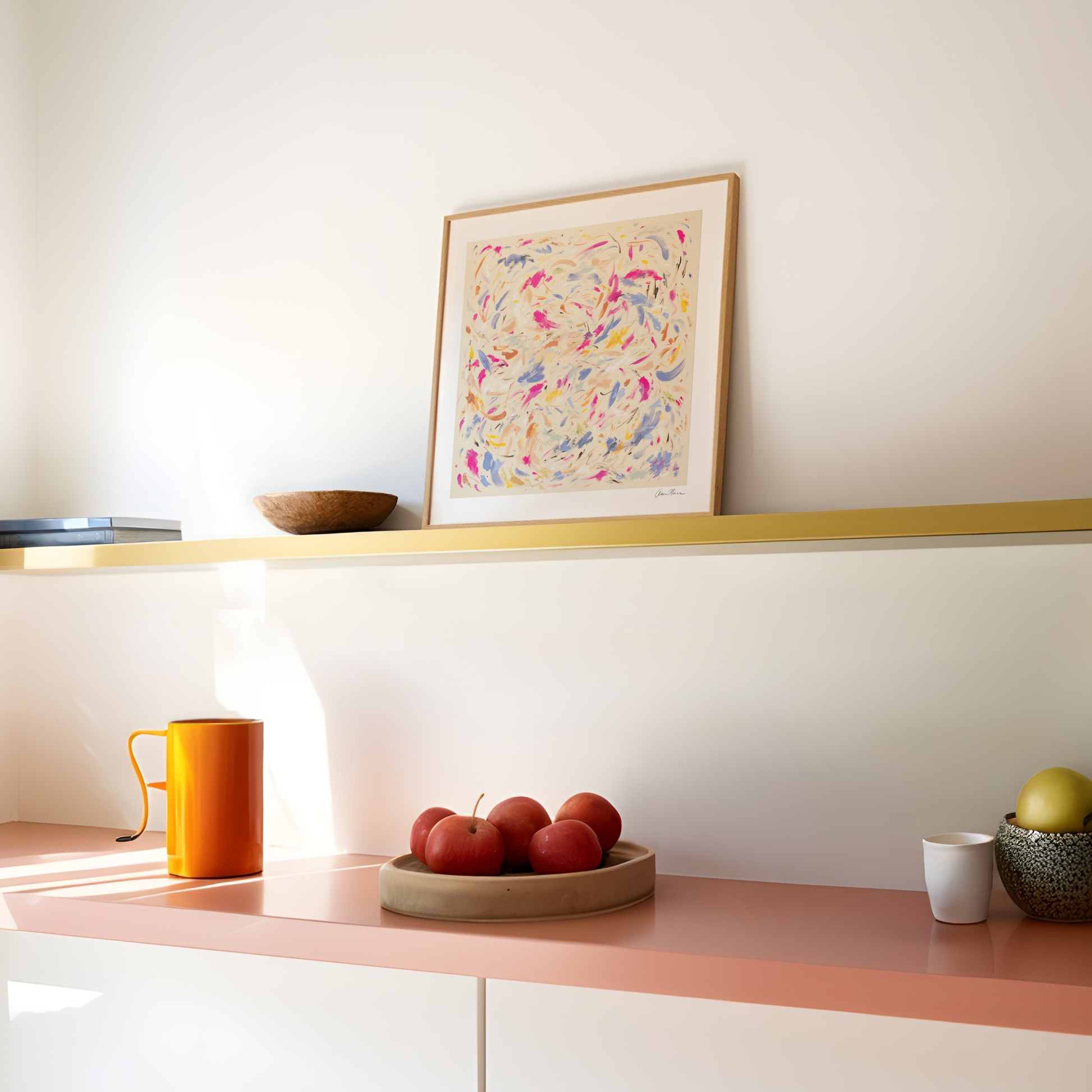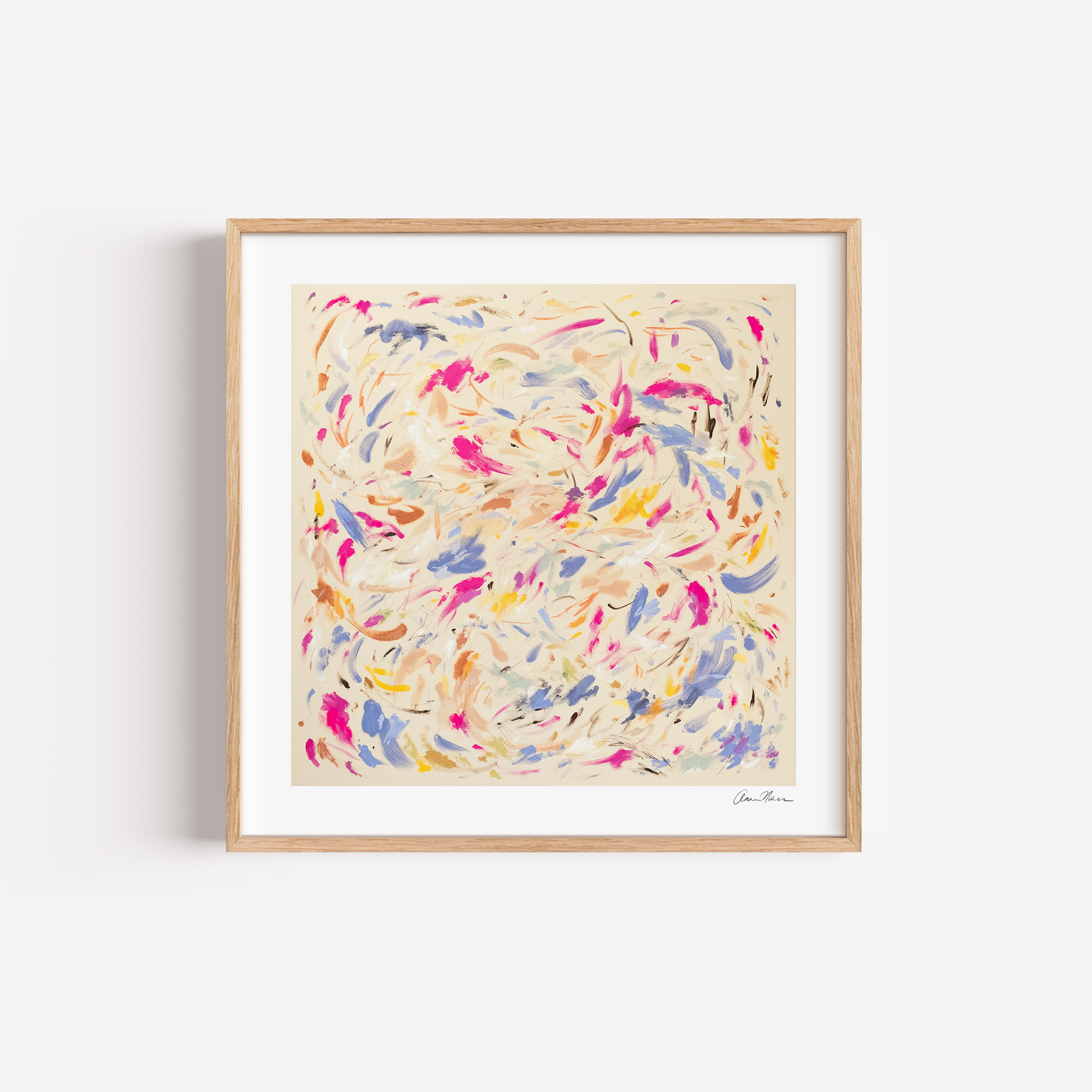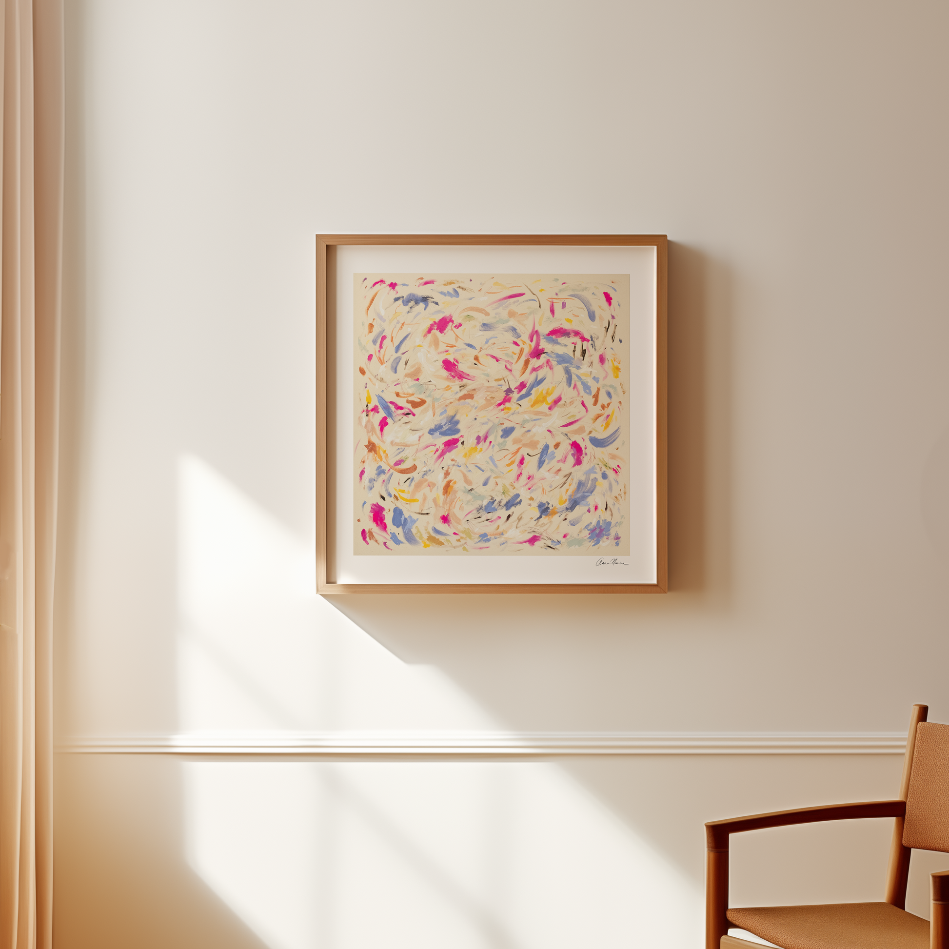 When the Jacaranda Tree Sways is inspired by one of those core memories I wish I could relive — visiting Casa Gilardi on my 30th birthday with my best friends during a trip to Mexico City. In the courtyard of Barragán’s famous house, a huge jacaranda tree stood in full bloom, its petals drifting around us like periwinkle confetti every time the breeze passed through. The lively strokes of pinks, lilacs, blues, and sunshine tones in this painting capture the joy, color, and friendship of that moment — the kind of softness you want to bottle up forever. This piece carries the sweetness of being present, celebrating beauty, and noticing the simple wonders God weaves into everyday life through nature.
